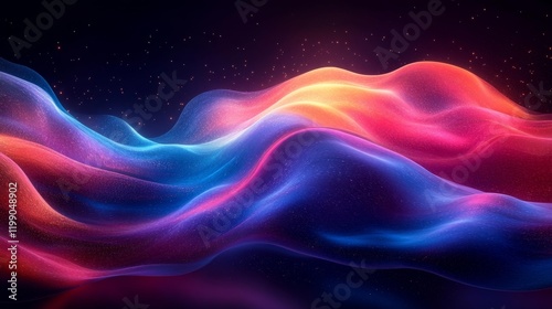 Abstract Flowing Neon Shapes on Black. Generative AI