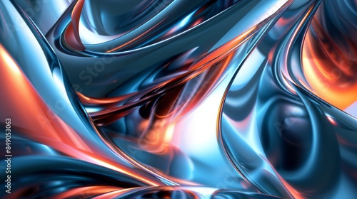 abstract Flowing shapes with a glossy finish in vibrant blue, red, and orange