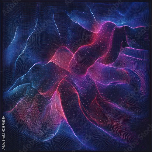 Abstract flowing waves, a digital background pattern. May be used for tech, art or science projects