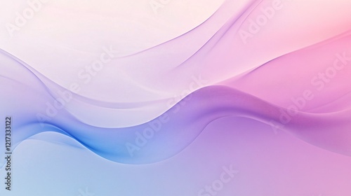 Abstract flowing waves in soft pastel hues of pink and blue create a calming and serene atmosphere.