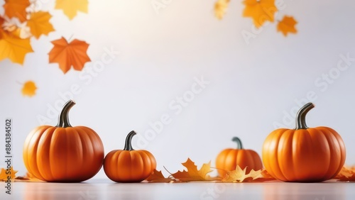 Abstract flowing waves with pumpkins on white background with beautiful bokeh and with copy space