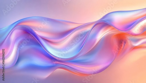 Abstract flowing waves with smooth, translucent texture in pastel colors of pink, blue, purple, and orange creating a calm and ethereal atmosphere