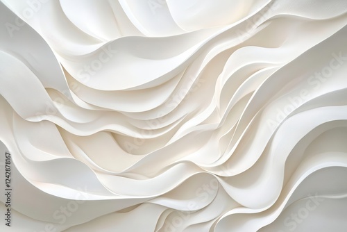 abstract flowing white waves creating elegant minimal geometric patterns with subtle shadows and depth