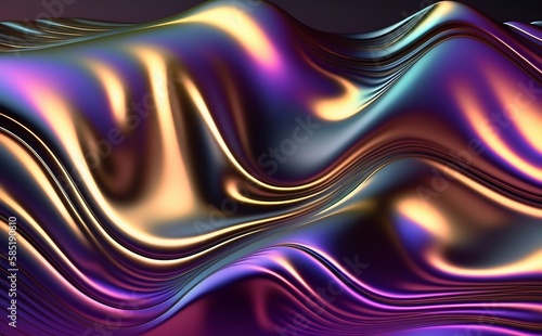 Abstract fluid 3d render iridescent holographic gradient waves texture design element for banner, background, wallpaper. AI Generative