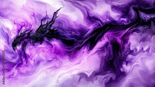 Abstract fluid art painting in shades of purple and black. Swirling, dynamic design.