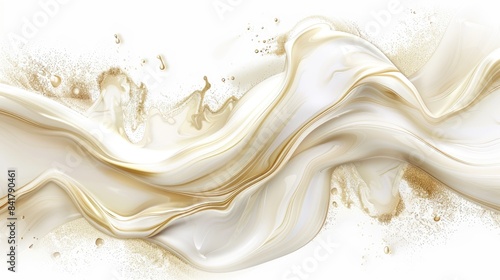 Abstract fluid art with elegant gold and white flowing waves on a smooth background, creating a sense of movement and sophistication.