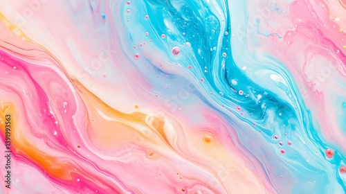 Abstract fluid art with pastel colors of pink blue and orange creating a swirling marble effect