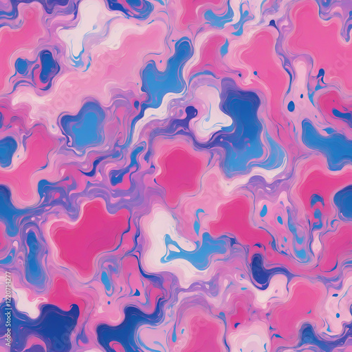 Abstract fluid pattern in pink and blue colors for seamless background.