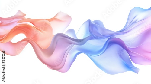 Abstract fluid shapes, 3d rendering illustration of colorful pastel color waves and cloth fabric floating in the air on white background. Modern art poster design with surrealistic twisted forms