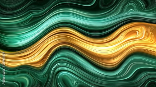 Abstract Fluid Wave Pattern in Green and Gold Color Palette