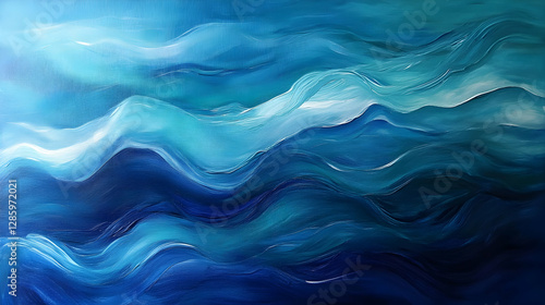 Abstract fluid waves of deep blue and teal, resembling ocean currents in motion -