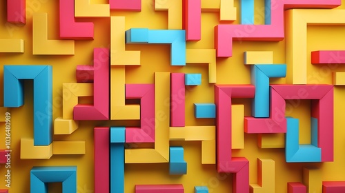 Abstract folded paper effect. Bright colorful yellow background. Maze made of paper. 3d rendering.