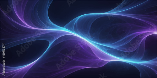 Abstract fractal background of blue and purple energy waves with flowing lines and a light smoke texture