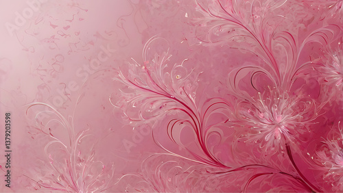 Abstract fractal flowers on a pink illustration, pattern botanical flower graphic floral texture summer modern vintage background red plant design. ai