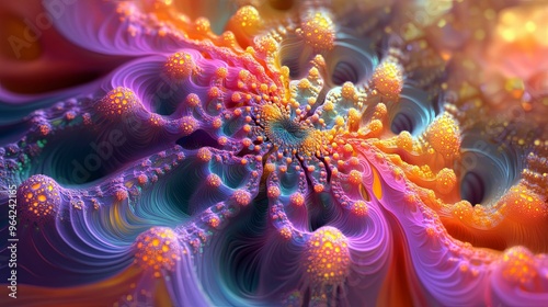 Abstract Fractal Pattern with Swirling Shapes and Glowing Spots