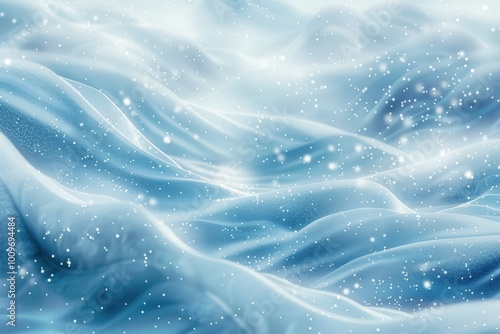 Abstract Frozen River Landscape with Flowing Ice Curves and Gentle Snowflakes