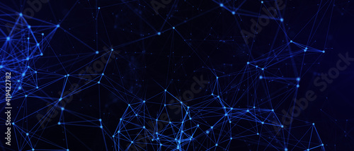 Abstract futuristic - technology with polygonal shapes on dark blue background. Design digital technology concept. 3d illustration.