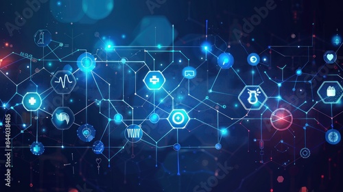 Abstract futuristic background with a chemical structure and glowing dots on a blue color
