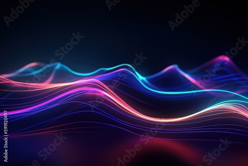 Abstract futuristic background with blurry glowing waves and neon lines. Spiritual energy concept, digital generative ai wallpaper