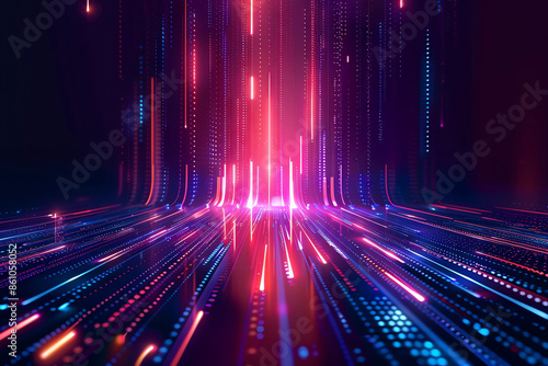 Abstract futuristic background with colorful neon lights and digital data streams. High-tech, cyber, and sci-fi theme.