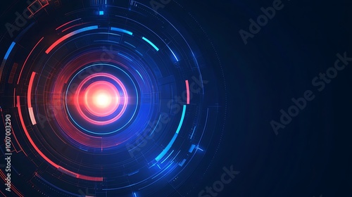 Abstract futuristic background with glowing circles and lines in red and blue hues on a dark backdrop.