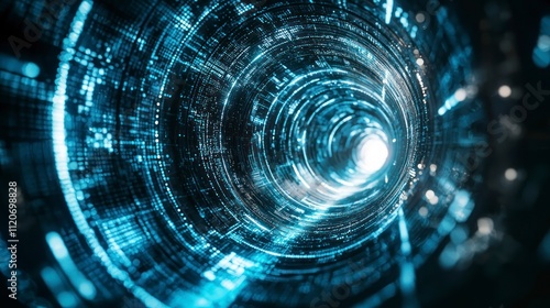 Abstract futuristic background with glowing digital lines in a tunnel-like shape