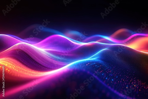 Abstract Futuristic Background with Glowing Neon Light Waves in Purple and Blue