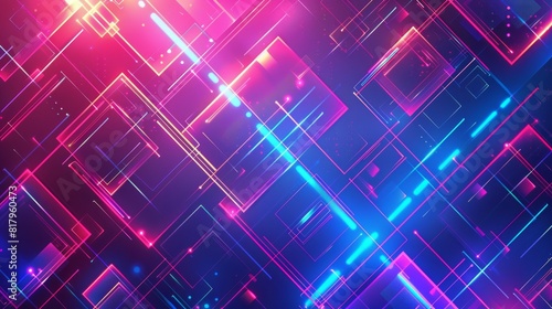 Abstract futuristic background with neon glowing blocks and lines in blue, pink, and purple colors. Digital technology concept. High quality photo