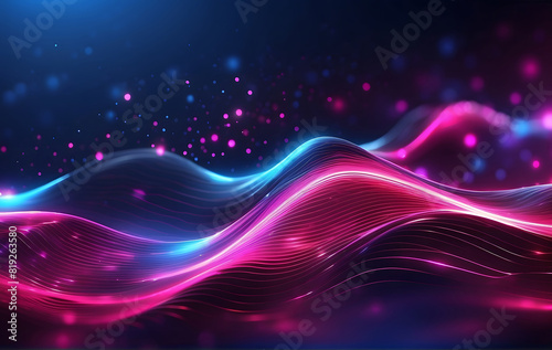 Abstract Futuristic Background with Pink and Blue Neon Waves & Bokeh Lights - Data Transfer Concept Wallpaper