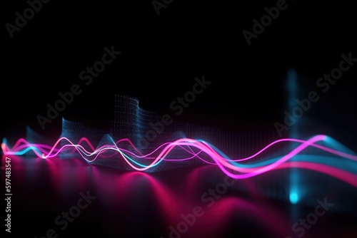 abstract futuristic background with pink blue glowing neon moving high speed wave lines and bokeh lights. Data transfer concept Fantastic wallpaper,Ai Generative