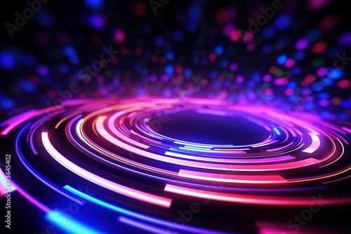 abstract futuristic background with pink blue glowing neon podium ring wave lines and bokeh lights. Data transfer concept Fantastic wallpaper