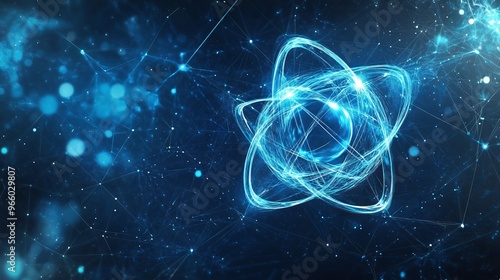 Abstract Futuristic Blue Background with Atomic Model - AI generated illustration