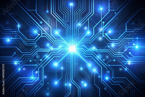 Abstract futuristic blue circuit board with glowing lines and nodes, representing innovative corporate business strategy, technology growth, and competitive market success.