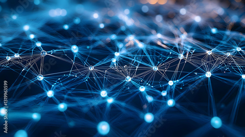 Abstract Futuristic Blue Network With Glowing Dots And Lines On Dark Background Representing Complex Digital Connections In Modern Technology