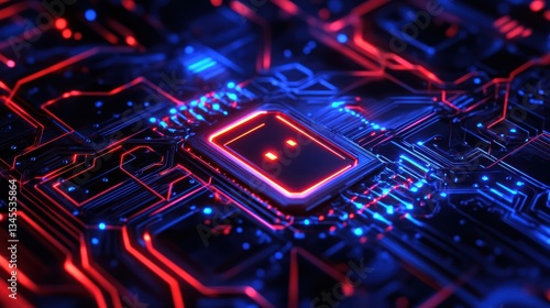Abstract Futuristic Circuit Board: Neon Glow Technology