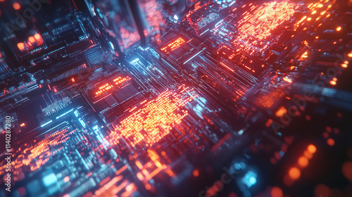 Abstract Futuristic Circuit Board Red and Blue Digital Technology Background