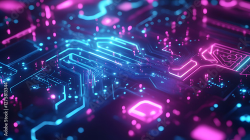 Abstract Futuristic Circuit Board Technology Background with Neon Pink and Blue Glowing Lines