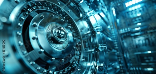 Abstract futuristic concept illustrating a safe within a bank vault, showcasing advanced security technology and modern design elements.
