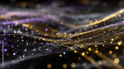Abstract futuristic digital artwork showing luminous streams, glowing mesh patterns, and flowing energy currents in bold colors. High resolution, ultra detailed, cinematic perspective with depth of fi