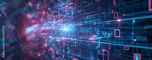 Abstract futuristic digital background with glowing lines and dots representing data streams and connections in a cyberspace network.
