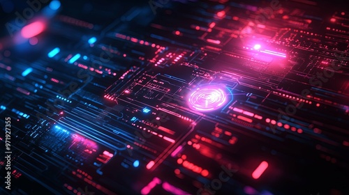 Abstract Futuristic Digital Interface with Glowing Lines and Circular Element