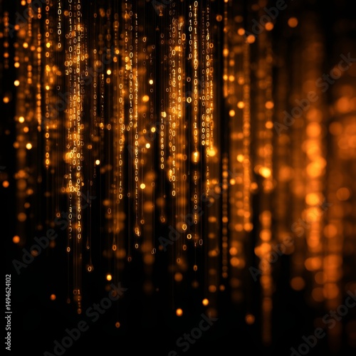 Abstract futuristic digital landscape with glowing binary code and neon tech elements