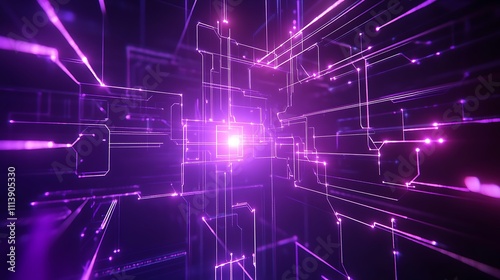 Abstract futuristic digital matrix with glowing lines and shapes in vibrant purple tones