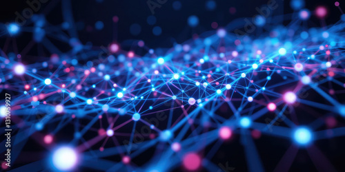 Abstract Futuristic Digital Network Visualization with Glowing Neon Connections, Technology Background Concept.