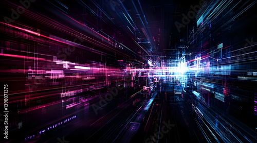 Abstract Futuristic Digital Tunnel With Glowing Lines