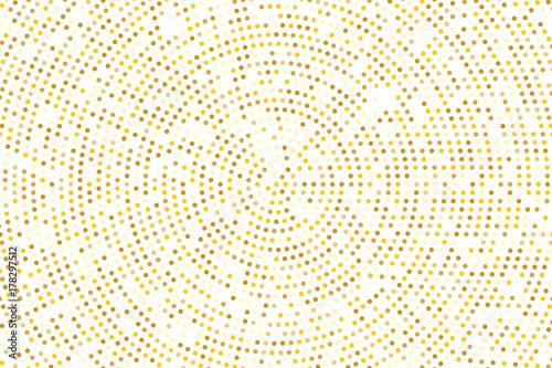 Abstract futuristic halftone pattern. Comic background. Dotted backdrop with circles, dots, point small scale. Gold, golden glitter