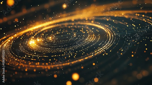 Abstract futuristic HUD background features glowing lines, concentric circles, and light particles. This high-tech vector illustration is perfect for sci-fi concepts, tech presentations,