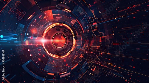 Abstract Futuristic Interface with Glowing Red and Orange Lines and Shapes