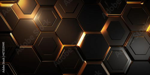 Abstract futuristic luxurious digital geometric technology hexagon background banner illustration 3d - Glowing gold, brown, gray and black hexagonal 3d shape texture wall