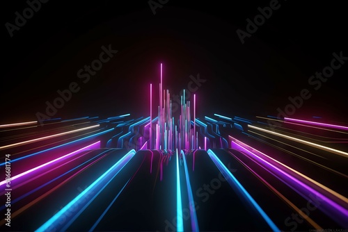 Abstract Futuristic Neon Background with Glowing 3D Rendered Lines. Generative AI